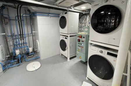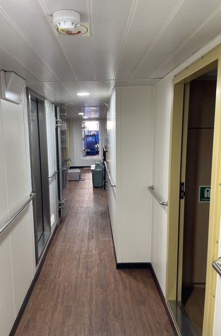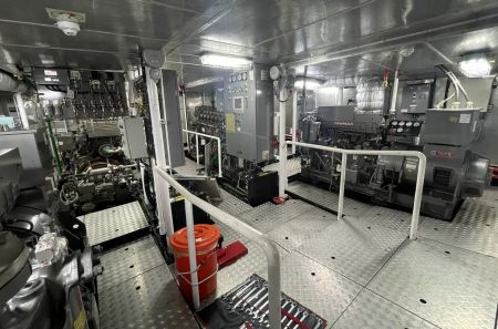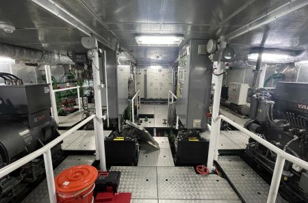 Two 300 KVA generators power her continuously, providing uninterrupted energy for up to fourteen days of offshore operation.